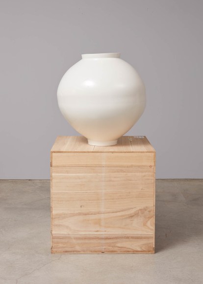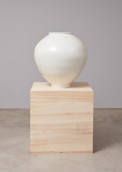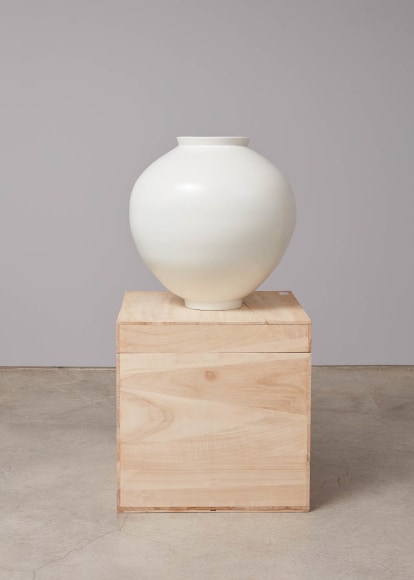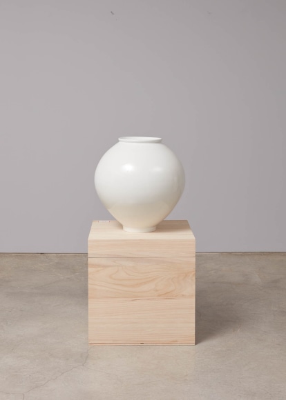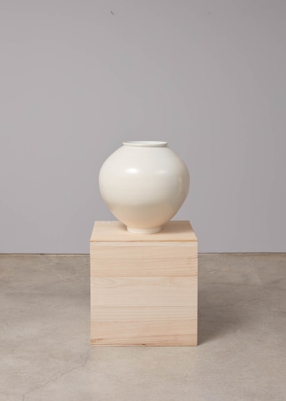 Vintage20 is pleased to present an exhibition of moon jars by Korean master ceramicist Kang Minsoo. The moon jar represents one of Korea’s most celebrated traditions, dating back to the 14th century; they are characterized by their full-bodied shape and radiant glazed surfaces that resemble lunar landscapes. Kang Minsoo has devoted his life to honoring this legacy while investing it with renewed energy and meaning in the modern era. The title of the show, incomplete perfection, is the translation of the Korean word 백자 달항아리 — it conveys the vital synergy between control of the medium and an openness to chance and natural imperfections in the process of shaping its final form; this balance characterizes the aesthetics and philosophy of the moon jar.