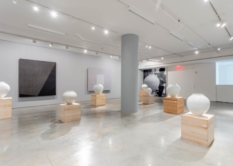 Vintage20 is pleased to present an exhibition of moon jars by Korean master ceramicist Kang Minsoo. The moon jar represents one of Korea’s most celebrated traditions, dating back to the 14th century; they are characterized by their full-bodied shape and radiant glazed surfaces that resemble lunar landscapes. Kang Minsoo has devoted his life to honoring this legacy while investing it with renewed energy and meaning in the modern era. The title of the show, incomplete perfection, is the translation of the Korean word 백자 달항아리 — it conveys the vital synergy between control of the medium and an openness to chance and natural imperfections in the process of shaping its final form; this balance characterizes the aesthetics and philosophy of the moon jar.