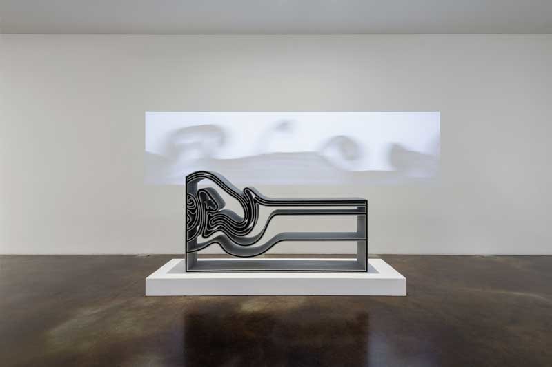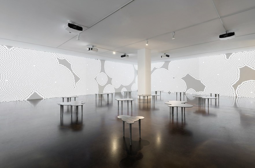 On view for the first time is a new installation of Turing Tables, named after the seminal mathematician Alan Turing. Near the end of his life, Turing wrote his first and last paper on biology and chemistry, detailing how a type of chemical reaction ought to produce many patterns seen in nature. In the following decades, scientists have been able to prove many of his postulates, discovering various stripes, spirals, and whorls—so-called Turing Patterns—throughout the natural world. This has led many to think that Turing Patterns may actually extend to ecosystems, even to galaxies. The installation will center around a group of unique tables made of bronze and stainless steel, all produced using the MX3D printing robots. The Turing Tables' computationally generated aesthetics are pushing the boundaries of current technology.